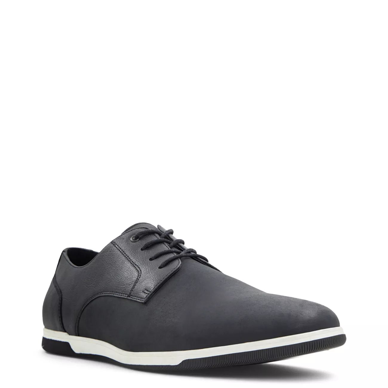 Embossed detail on the vamp adds a unique touch and laidback look to these men's Steve Madden Galen black hybrid dress shoes. Crafted with man-made upper, these casual oxfords have an almond toe and lace-up closure. Along with a neoprene stretch collar for style and comfort, features include a pull tab for easy wearing, fabric lining, and a durable rubber outsole. Welt stitching detail adds aesthetic appeal.