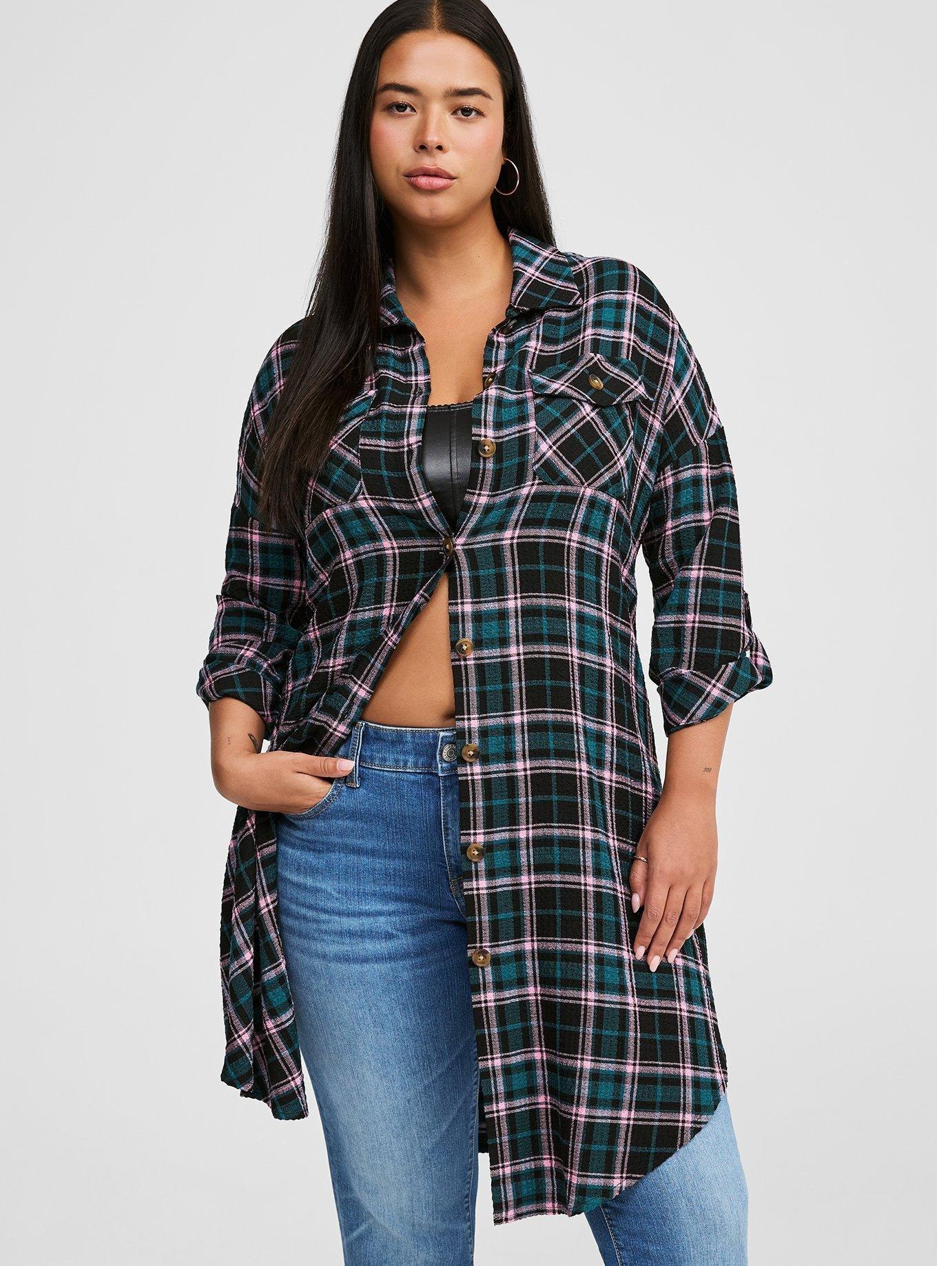 Oversized shirt jacket in soft, woven fabric. Collar, metal buttons at front, and chest pockets with a flap and button. Gently dropped shoulders, long sleeves, and button at cuffs. Unlined.