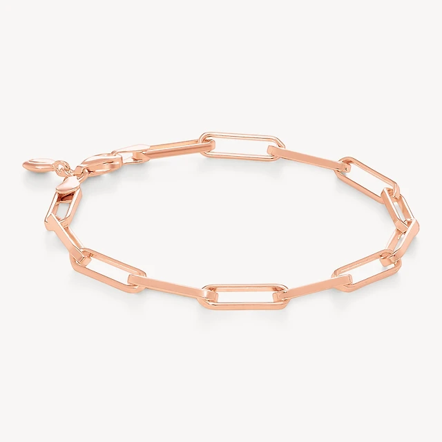 Bracelet en argent sterling à placage en or rose 14K à cœur et à pavé
