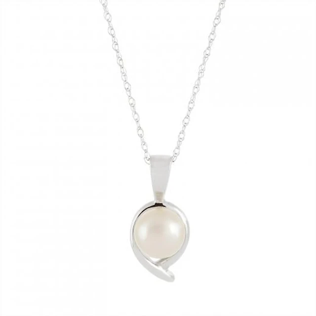 10K White Gold 6mm Round Cubic Zirconia Solitaire Pendant with 17" Chain