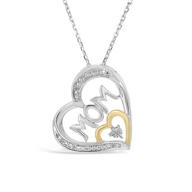 Sterling Silver 14K Rose Gold Plated Diamond Mom Pendant