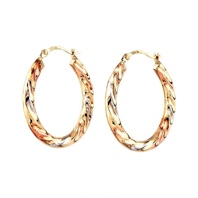10K Tri-Colour Gold Diamond Cut Hoop Earrings