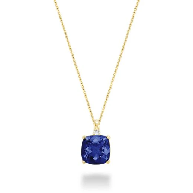 10K Yellow Gold Created Blue Sapphire & Diamond Pendant