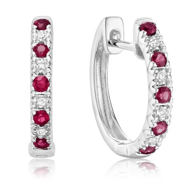 10K White Gold 0.04CTW Diamond and Ruby Earrings