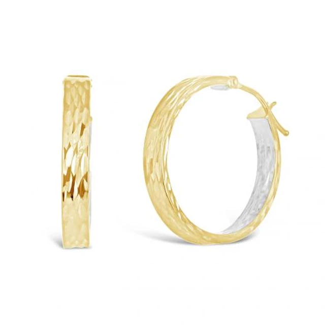 10K Yellow and White Gold Diamond Cut Oval Creole Hoops