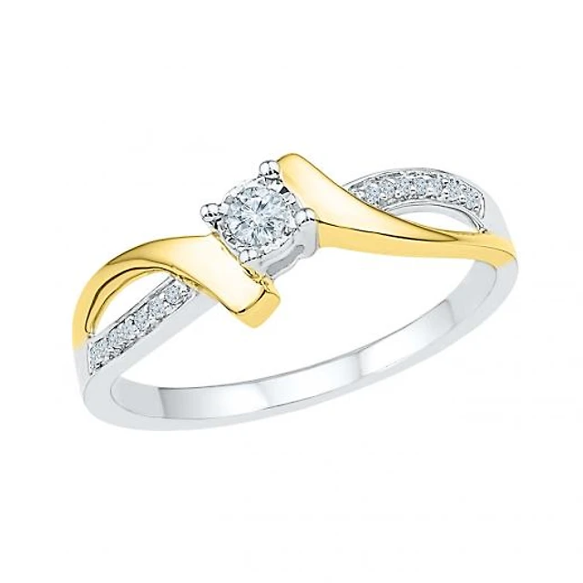 10K White & Yellow Gold 0.20CTW Diamond Twist Promise Ring
