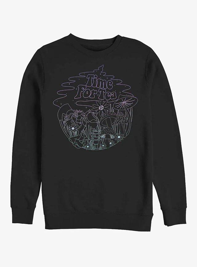 Disney Alice Wonderland Tea Time Line Crew Sweatshirt