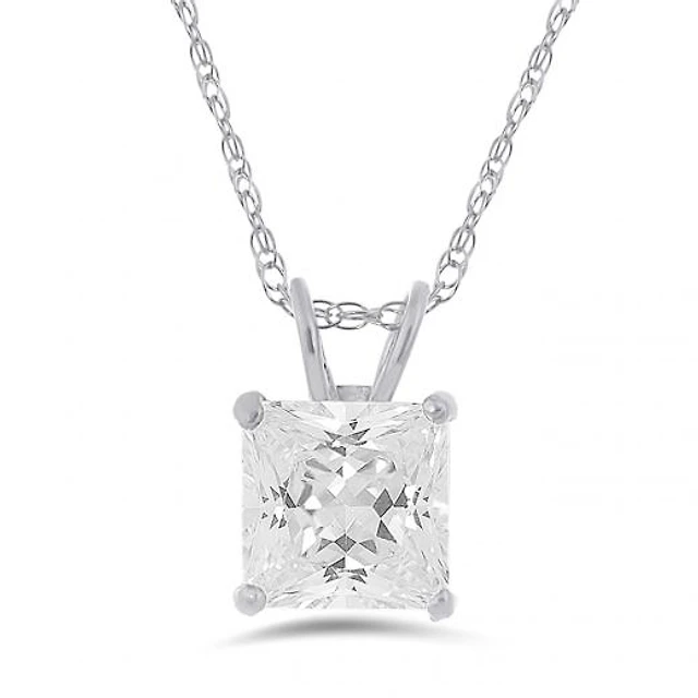 10K White Gold 6mm Princess Cubic Zirconia Solitaire Pendant