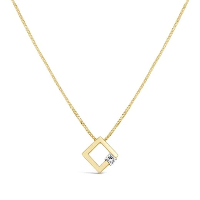 10K Yellow Gold 6mm Princess Cubic Zirconia 17" Pendant