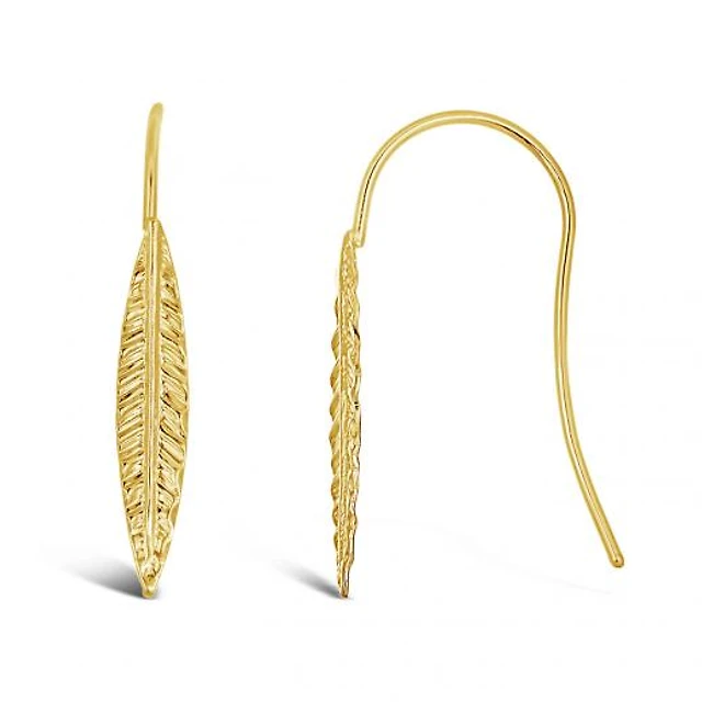 Round Brilliant Diamond Drop Sleeper Earrings in 10kt Yellow Gold