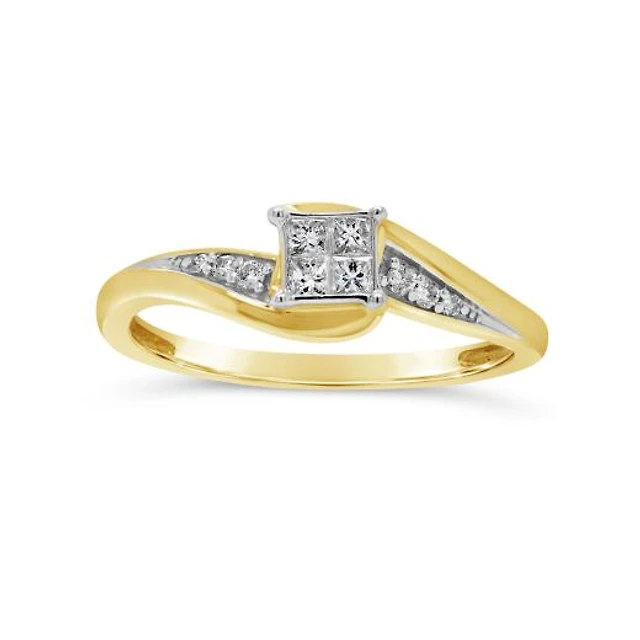 10K Yellow Gold 0.15CTW Princess Cut Diamond Promise Ring