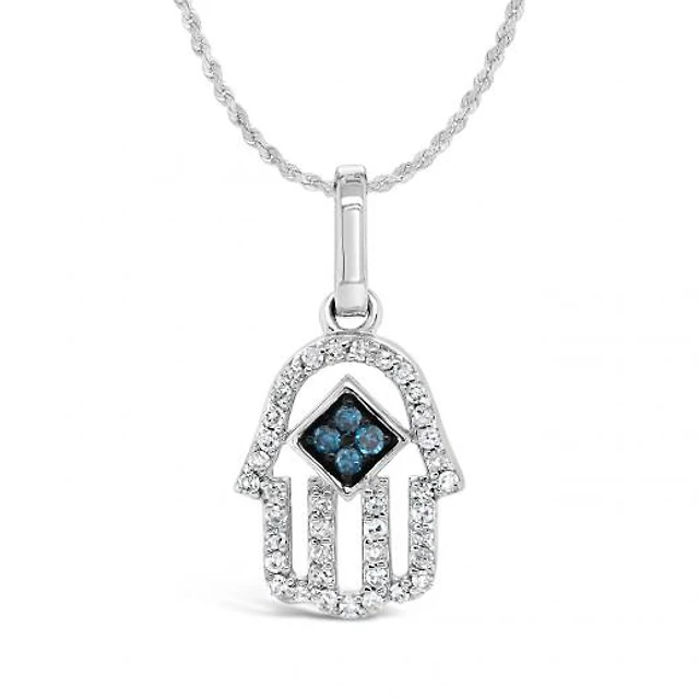 Sterling Silver 0.10CTW White & Blue Diamond Hamsa Pendant