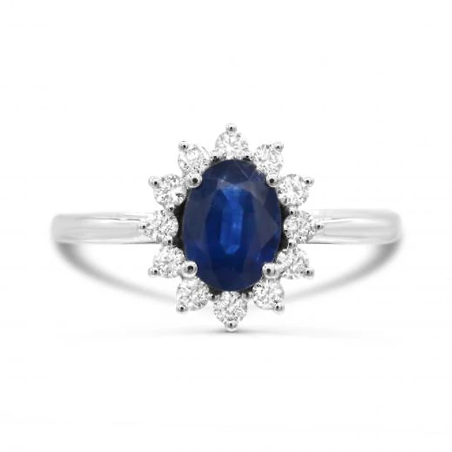 10K White Gold Sapphire & Canadian Diamond Cluster Ring