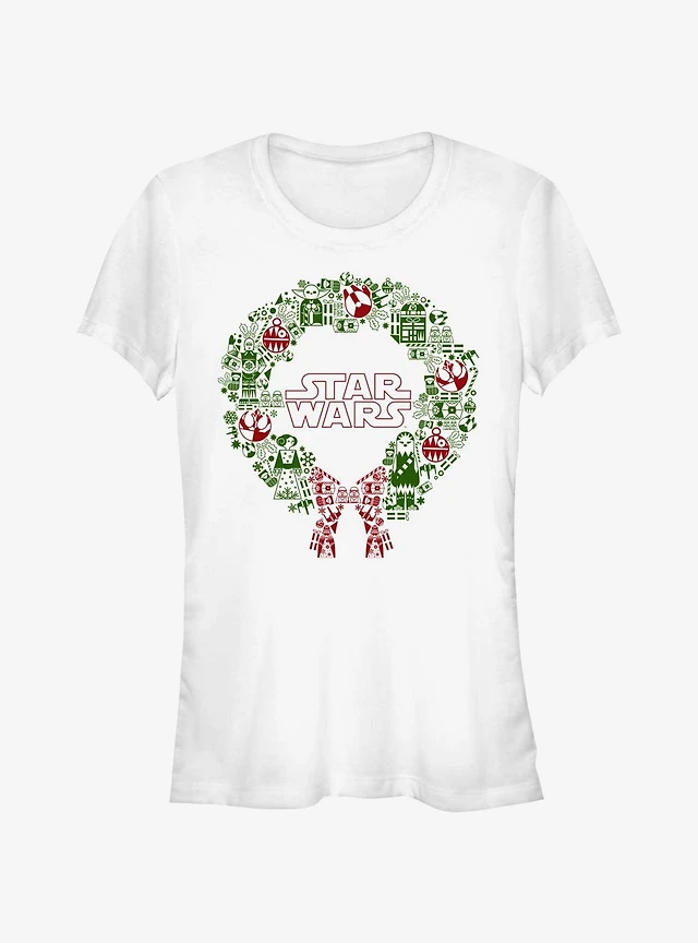 Star Wars Christmas Wreath Icon Fill Girls T-Shirt