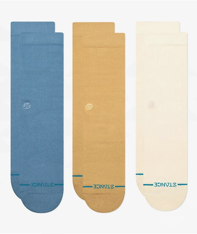 Stance Icon Seasonal Natural, Tan & Turquoise 3 Pack Crew Socks