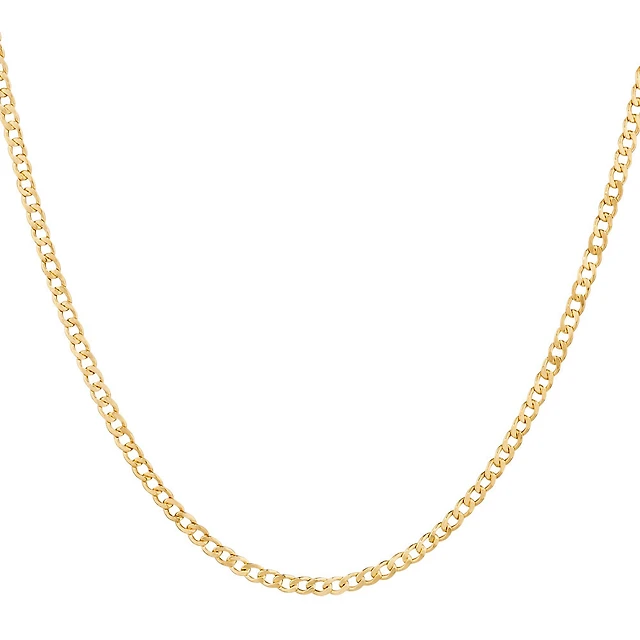 55cm (22") 3mm Width Solid Flat Bevelled Curb Chain in 10kt Gold
