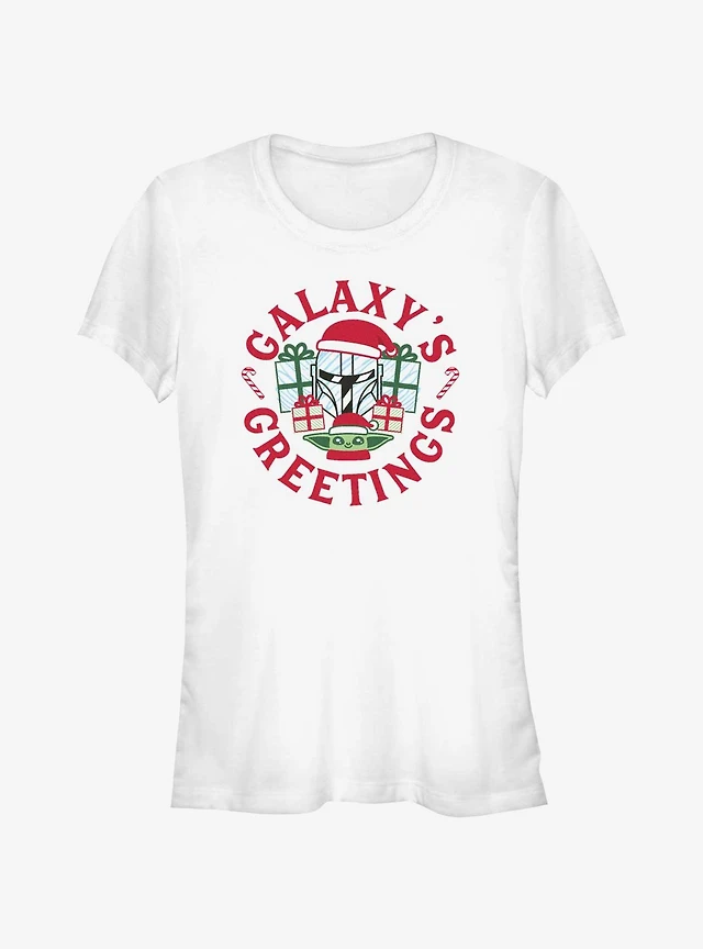 Star Wars The Mandalorian Galaxy's Greetings Stamp Girls T-Shirt