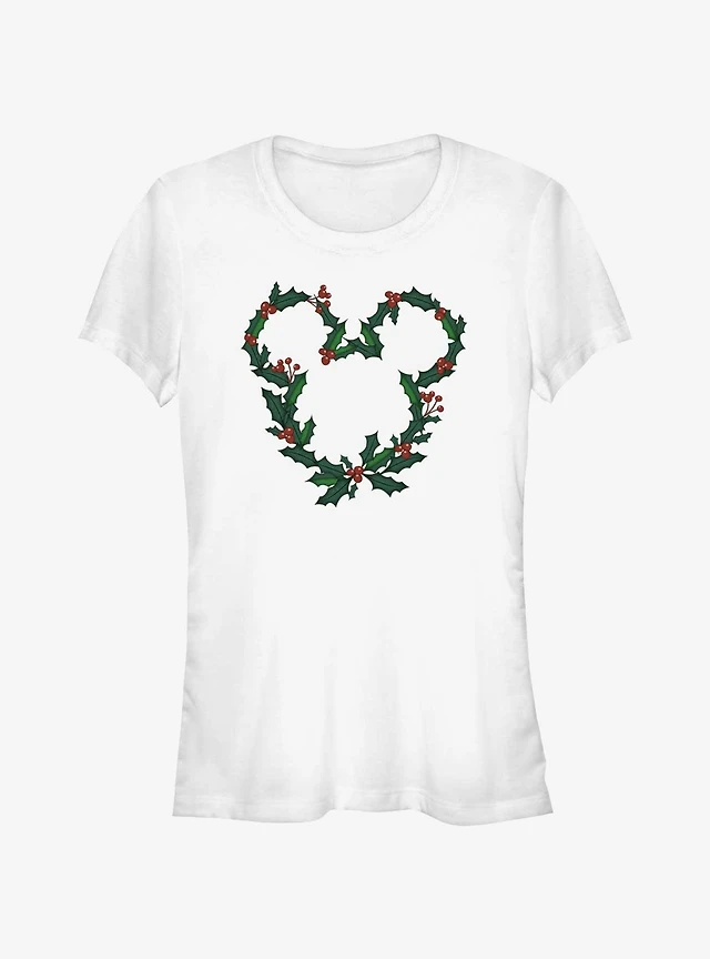 Disney Mickey Mouse Mistletoe Wreath Ears Girls T-Shirt