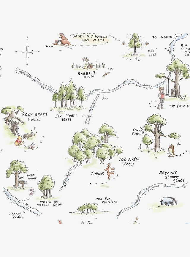 Disney Winnie The Pooh 100 Acre Wood Map Peel And Stick Wallpaper