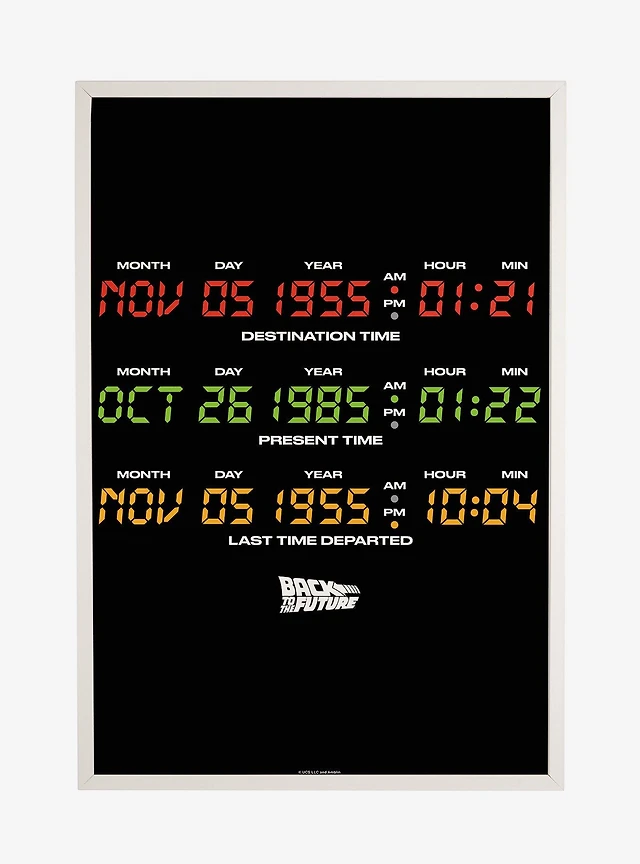 Back To The Future Delorean Time Destinations Framed Poster