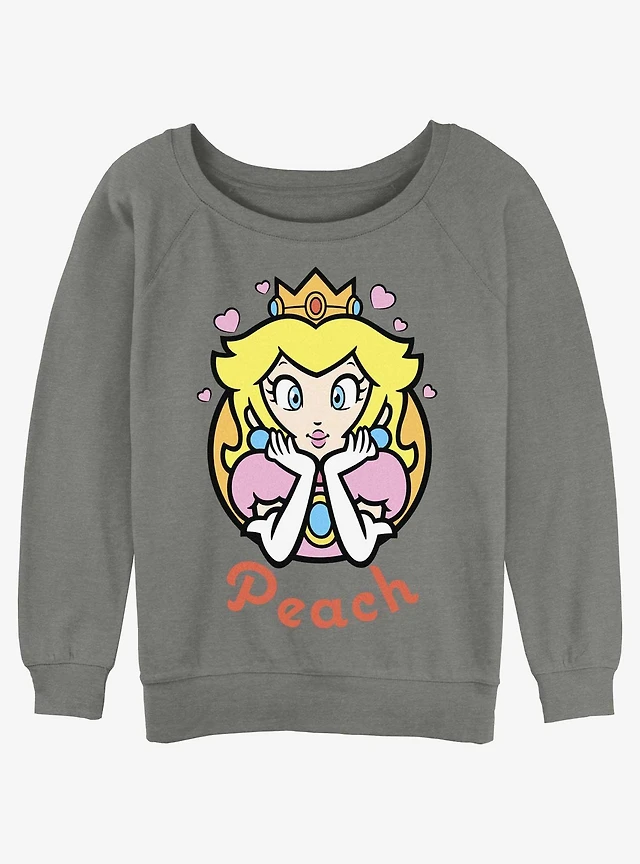 Nintendo Mario Peach Hearts Girls Slouchy Sweatshirt