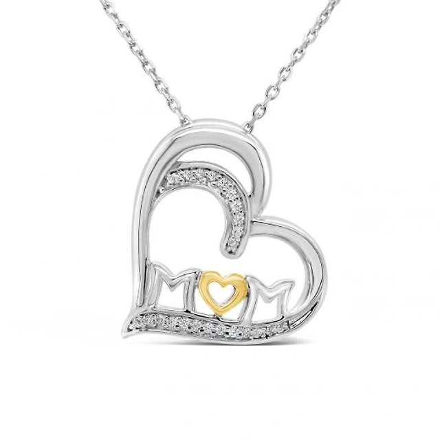 Sterling Silver & 10K Yellow Gold 0.03CTW Diamond Heart Mom Pendant