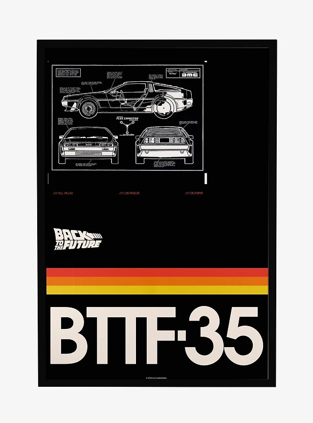 Back To The Future Delorean Blueprint Framed Poster