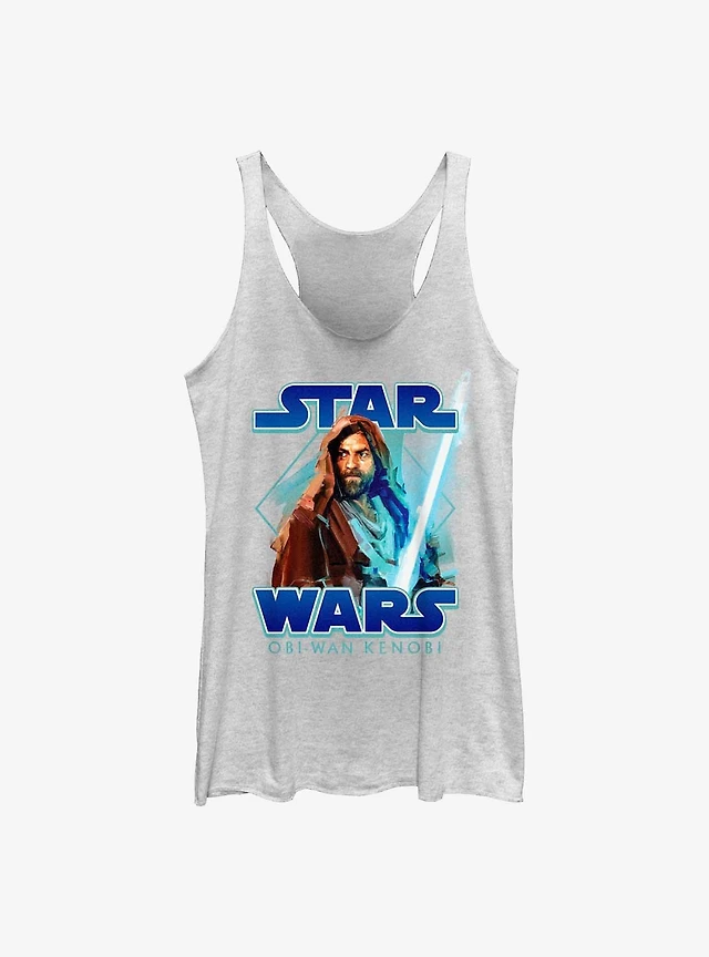 Star Wars Obi-Wan Painterly With Logo Girls Raw Edge Tank