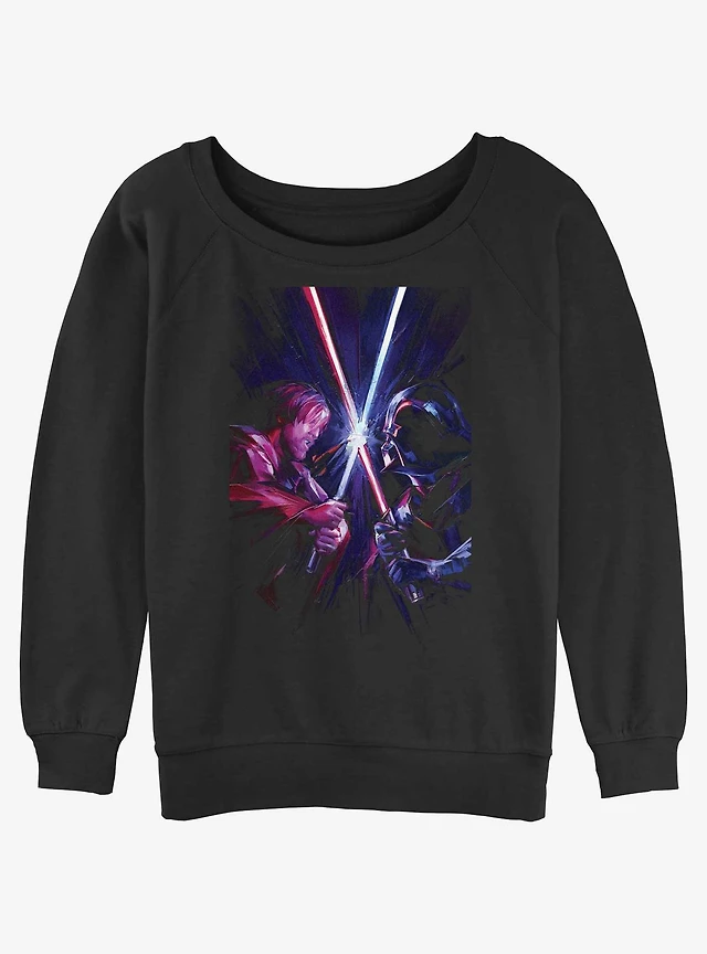 Star Wars Kenobi and Vader Saber Fight Girls Slouchy Sweatshirt