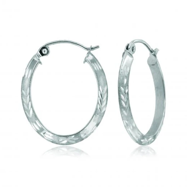 10K White Gold Diamond Cut Oval Hoop Earrings