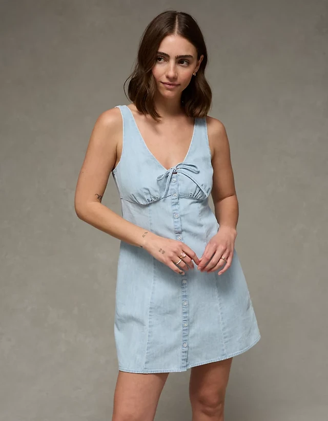 AE Denim Ruffle Pinafore Mini Dress