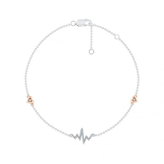 Sterling Silver 10K Rose Gold Diamond Heartbeat Bracelet