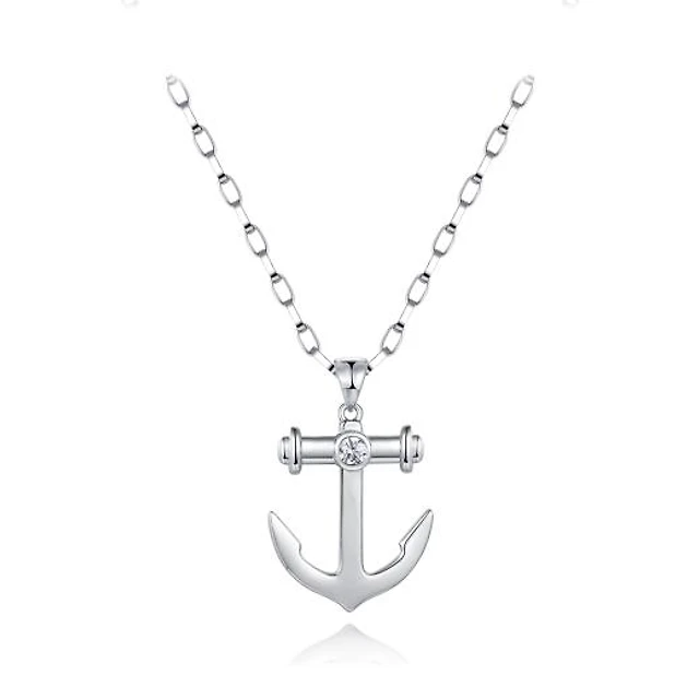 Sterling Silver Cubic Zirconia Anchor 24" Pendant