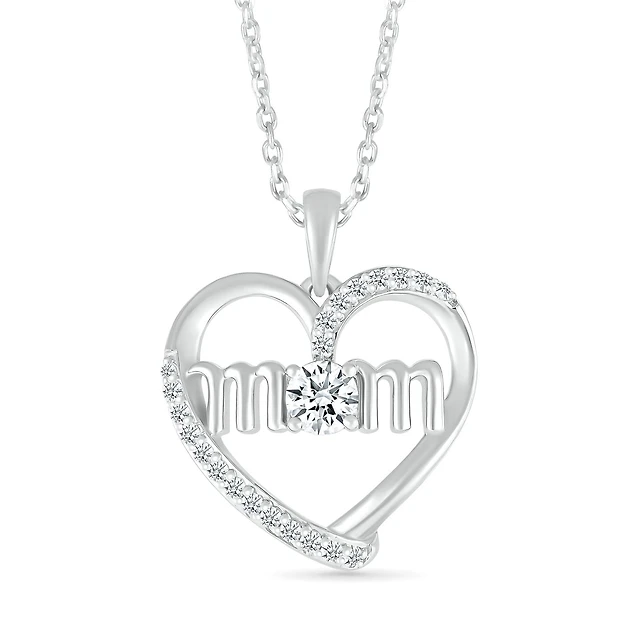 Sterling Silver Created White Sapphire Mom Heart Necklace