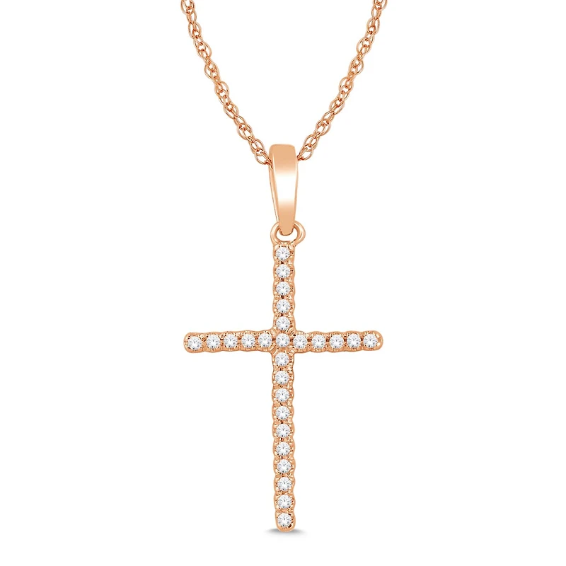 10K Rose Gold 0.05CTW Diamond Cross Pendant