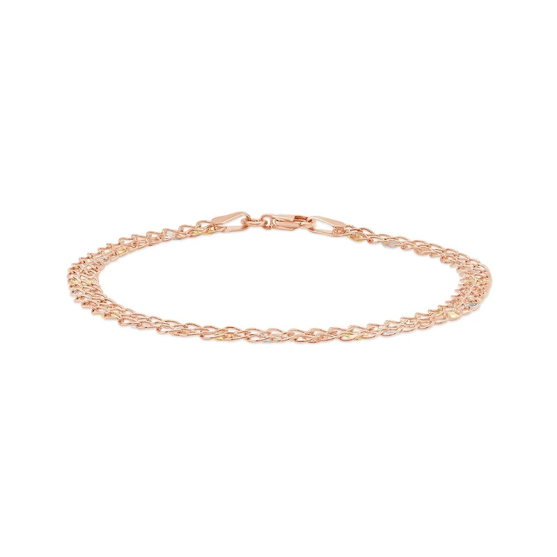 Stand out from the crowd with this glistening 10k yellow, white and rose gold bracelet. Featuring lustrous weaving links, this versatile bracelet is sure to become a favourite in your jewellery collection.