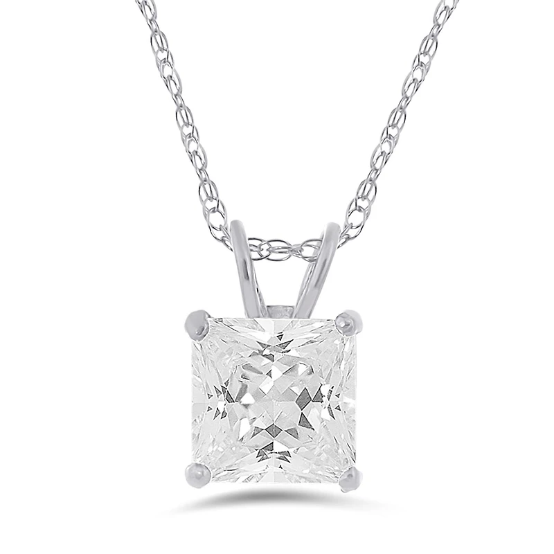 10K White Gold 6mm Princess Cubic Zirconia Solitaire Pendant