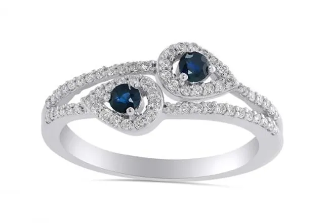 10K White Gold Blue Sapphire and Diamond Ring