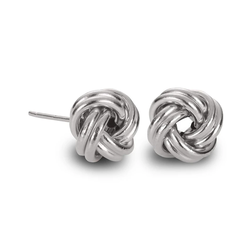 Swirling 10K white gold creates these LoveKnot earrings. A symbol of constancy between two lovers these earrings shine with a high polish finish. These earrings are perfect for everyday wear!