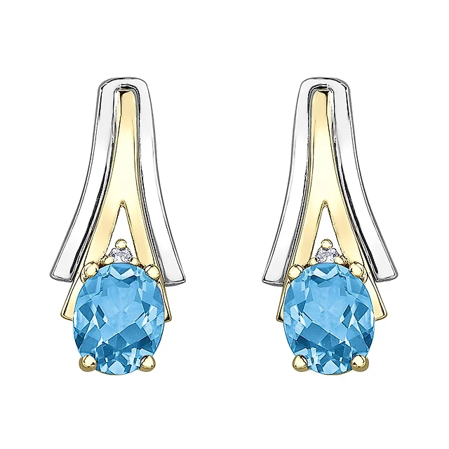 10K White & Yellow Gold Blue Topaz & 0.01CTW Diamond Earring