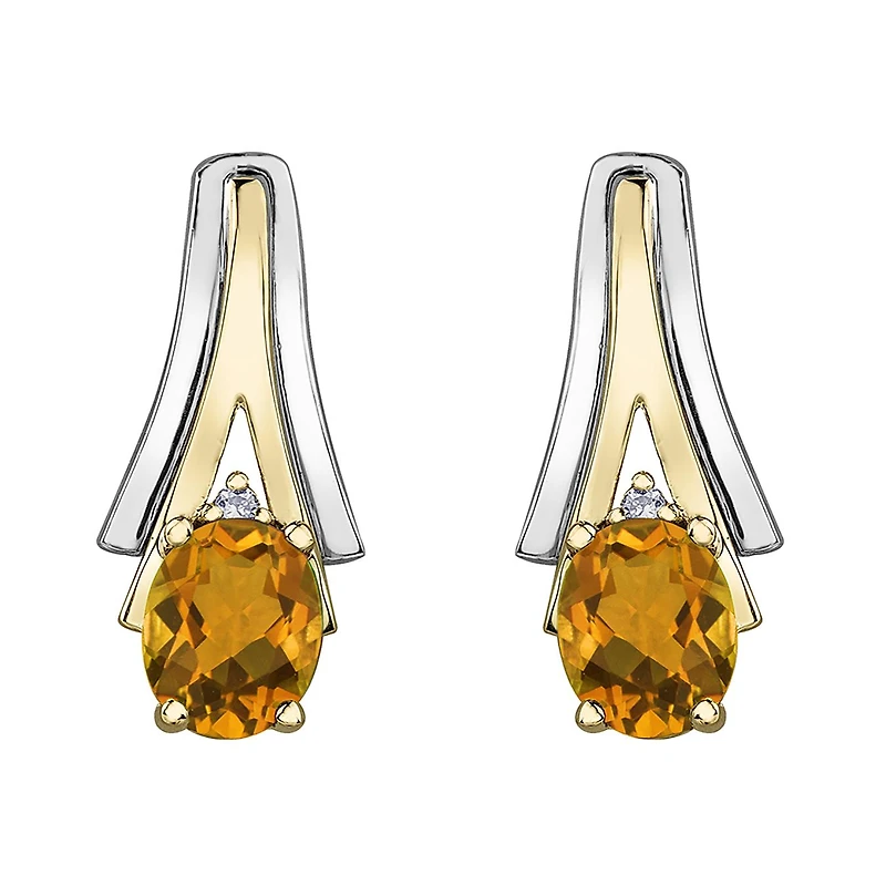 10K White & Yellow Gold Citrine & 0.01CTW Diamond Earring