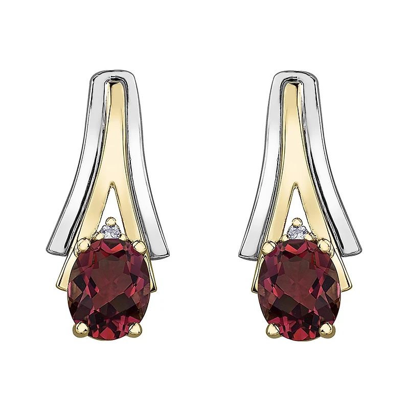 This modern yet classic 10k white and yellow gold earring is sure to become a favourite item in your jewellery collection. This item is perfectly adorned with genuine rubies which is the birthstone for July. If you are looking for something stunning, order this for yourself or someone you love today!