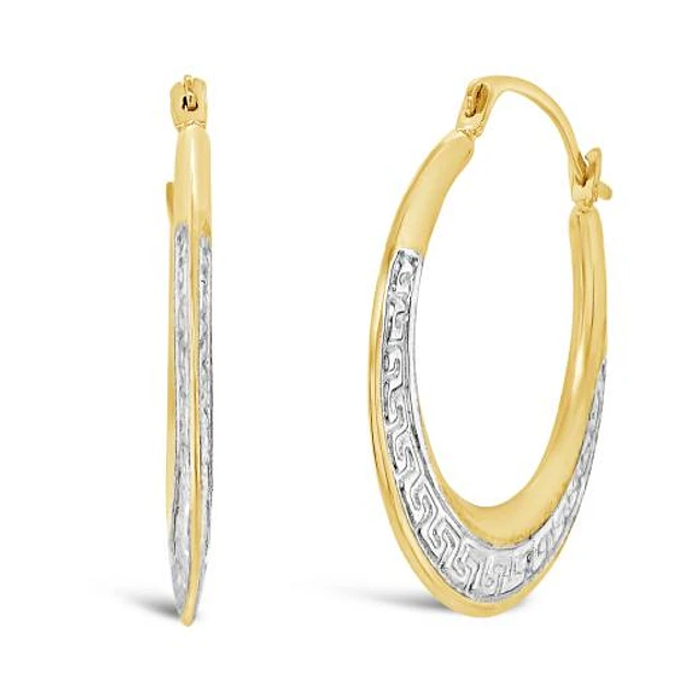 10K Yellow and White Gold Round Creole Earrings