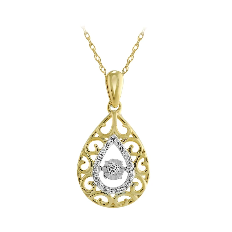 10K Yellow Gold 0.09CTW Dancing Diamond Pendant