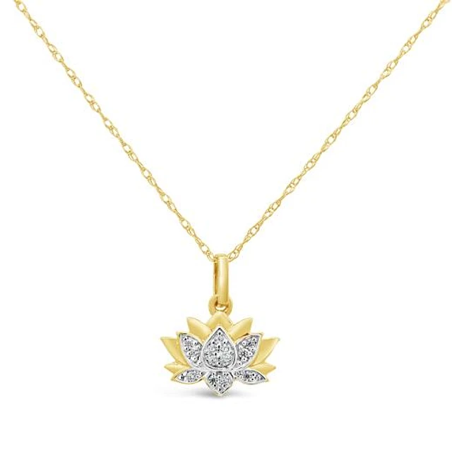 10K Yellow Gold Diamond Lotus Flower Pendant
