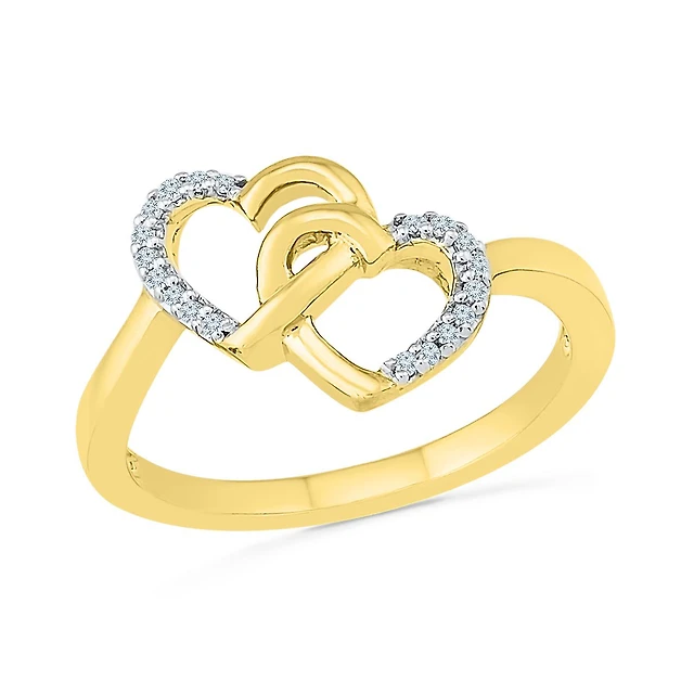 10K Yellow Gold Diamond Double Heart Promise Ring