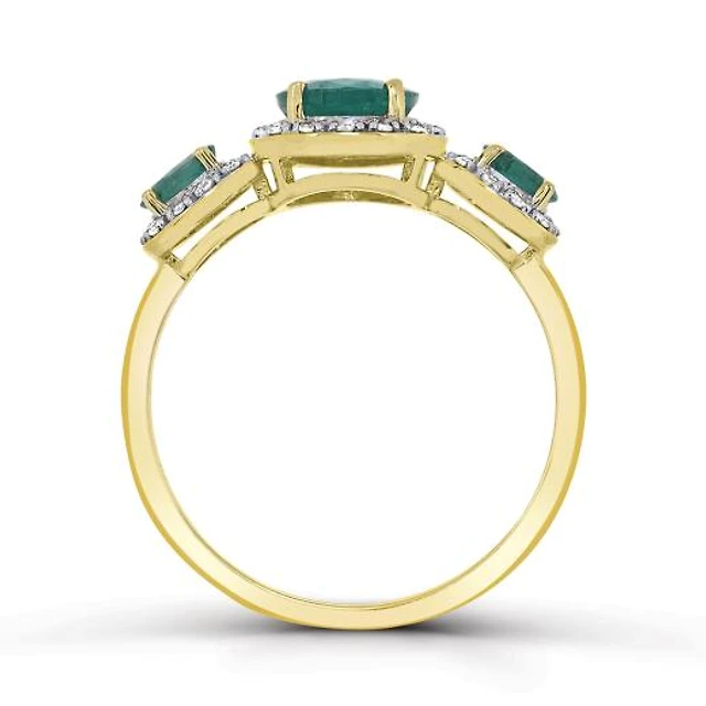 14K Yellow Gold Emerald & 0.20CTW Diamond Ring