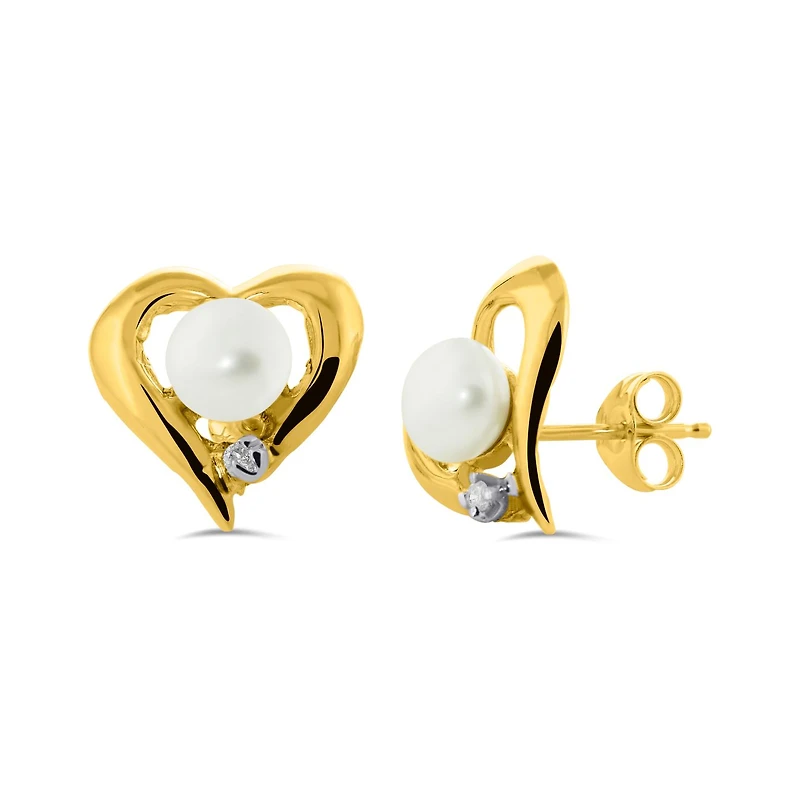 These classic 10k yellow gold 5-6mm pearl stud earrings accented with diamonds are a must have for any jewellery lovers collection. These earrings are a lovely choice to suit all occasions and are great for travelling. Buy a pair for yourself today or someone you love!
