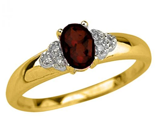 10K Yellow Gold Garnet 0.03CTW Diamond Ring