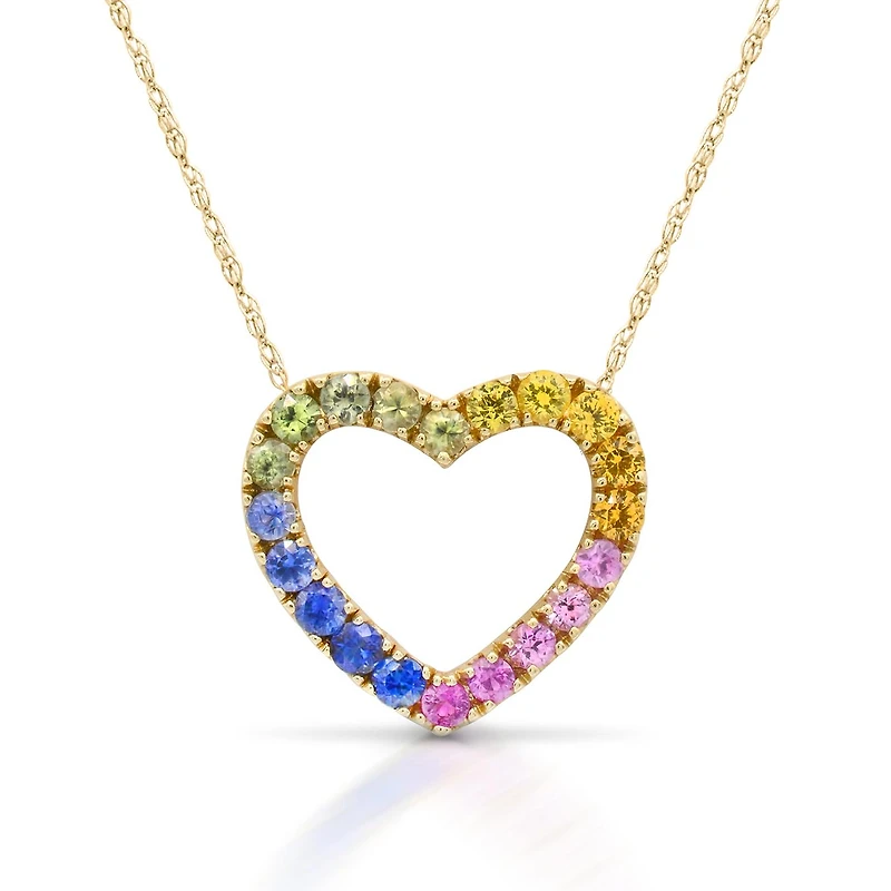 10K Yellow Gold Multi-Coloured Sapphire Heart 18" Pendant